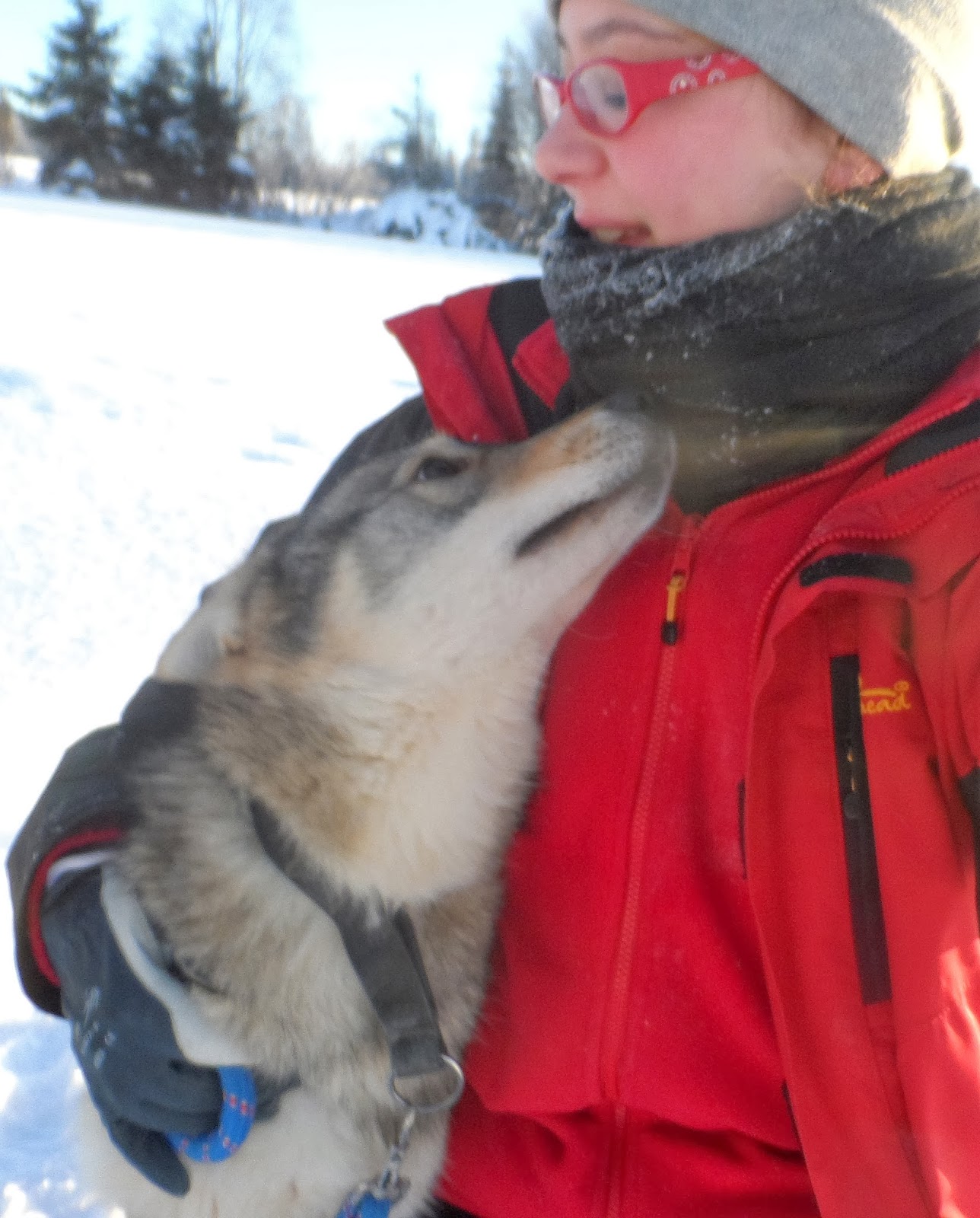 I started walking in a random direction. Miia seemed to be confused. So I just let her lead. I tried every word that came to my mind to make her understand where I wanted her to go..."ruoka" (food), "talo" (house), "koppi" (doghouse)...Miia was still confused. "koti" ('to' home)...That worked! She started pulling me through the woods and seemed to be so secure about where to turn and which trail to follow, that I decided to trust in her. Even though she does not run the tracks anymore, she knows her surroundings very well. Miia brought me home where her "ruoka" was waiting for her yet. Mr. Wolf was amused.